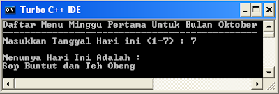 printf("\nMasukkan Tanggal Hari ini (1-7) : ");